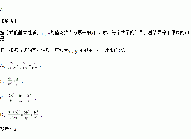 若x、y的值均扩大为原来的2倍,则下列分式的值保持不变的是![]()
