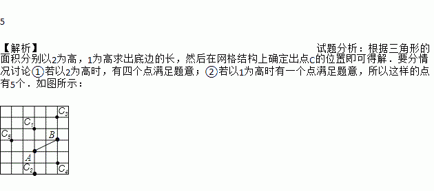 如图,在一个正方形被分成三十六个面积均为1的小正方形,点A与点B在两个格点上,问在格点上是否存 在一个点C,使△ABC的面积为2,这样的点C有_________个.
