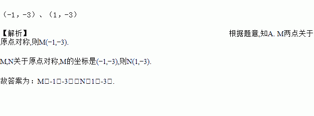 如图,阴影部分组成的图案既是关于x轴成轴对称的图形又是关于坐标原点O成中心对称的图形,若点A的坐标是(1,3),则点M和点N的坐标分别是______ .