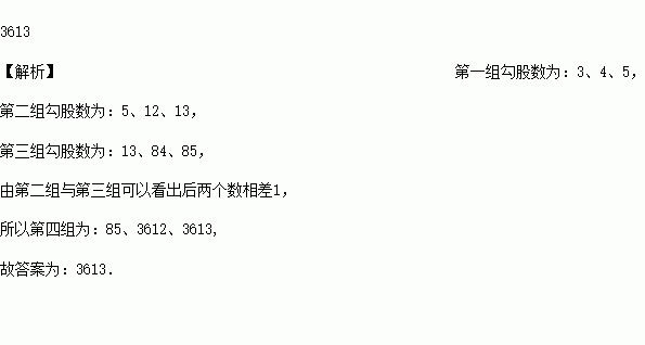 按下列数据的规律填写:3,4,5,12,13,84,85,3612,________ ,….