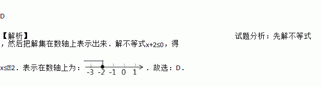 若把不等式x+2≤0的解集在数轴上表示出来,则正确的是( )