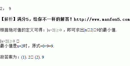 当x=_______时,|x-2|+9有最小值,这个最小值为_________.