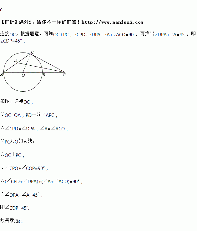已知是的直径,点是延长线上的一个动点,过作的切线,切点为,的平分线交于点,则等于( )
