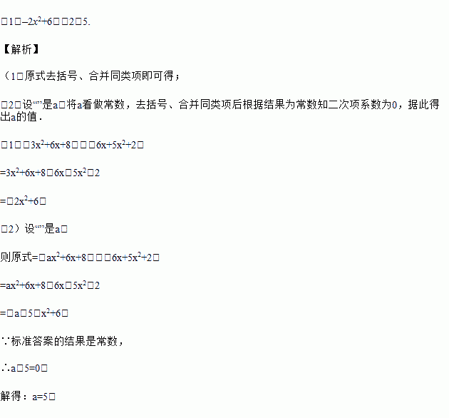 (1)他把“”猜成3,请你化简:(3x2+6x+8)–(6x+5x2+2);![]()