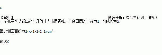 一个几何体的主视图和左视图都是边长为2 cm的正三角形,俯视图是一个圆,那么这个几何体的侧面积是( )