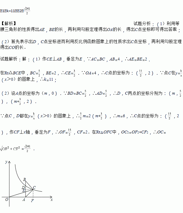 (x>0)的图象经过点C,交AB于点D,已知AB=4,BC=