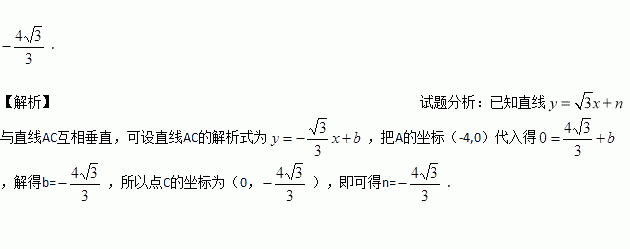 如图,点A的坐标为(-4,0),直线y=x+n与坐标轴交于点B,C,连接AC,如果∠ACD=90°,则n的值为________.