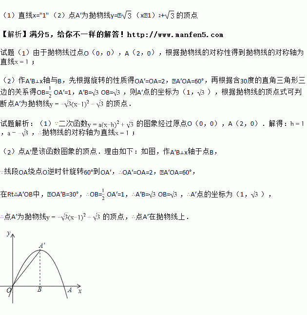 (2)若将线段OA绕点O逆时针旋转60°到OA′,试判断点A′是否为该函数图象的顶点?请说明理由.