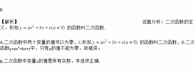 C. 形如y=ax2+bx+c的函数叫二次函数