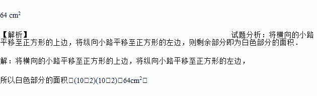 如图所示,一张白色正方形纸片的边长是10 cm,被两张宽为2 cm的阴影纸条分为四个白色的长方形部分,请你利用平移的知识求出图中白色部分的面积.