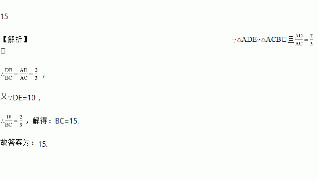 如图,若△ADE∽△ACB,且,DE=10,则BC=______.