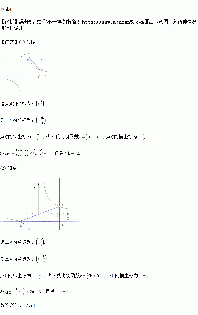 过双曲线的动点作轴于点,是直线上的点,且满足,过点作轴的平行线交此双曲线于点.如果的面积为8,则的值是__________.