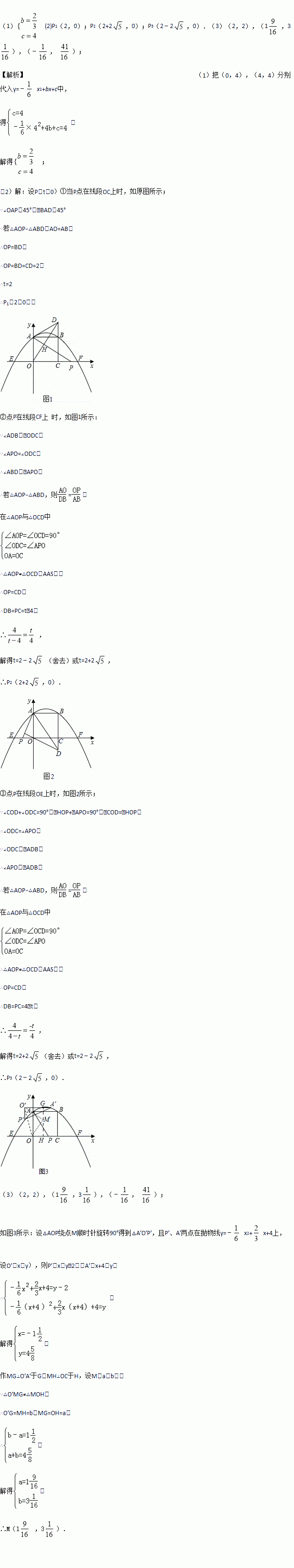 (3)在点P运动到OC中点时,能否将△AOP绕平面内某点旋转90°后使得△AOP的两个顶点落在x轴上方的抛物线上?若能,请直接写出旋转中心M的坐标;若不能,请说明理由.