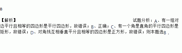 A. 有一组对边平行的四边形是平行四边形 B. 有一组邻边相等的平行四边形是菱形