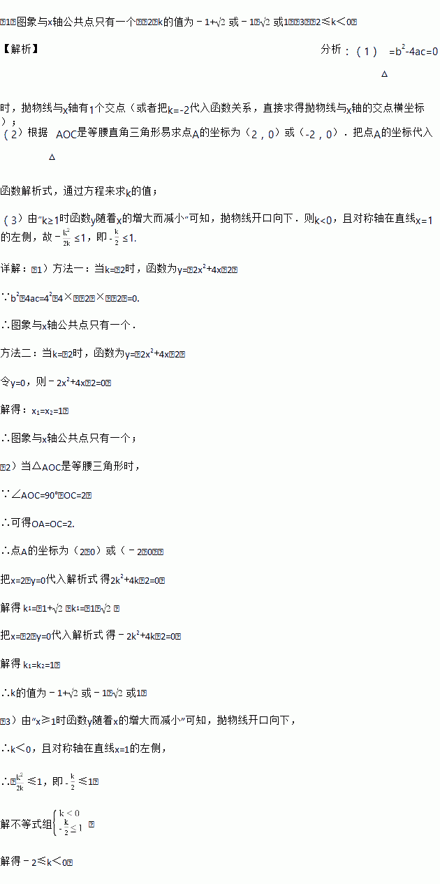 (2)若图象与x轴有一个交点为A,当△AOC是等腰三角形时,求k的值.