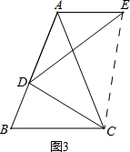 £¨3£©²¹È«Í¼ÐÎÈçͼ3£¬Á¬½ÓEC£¬ÓÉAE¡ÎBC£¬¡ÏEAC=¡ÏACB=¦Á£¬![]()