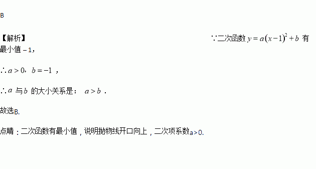 已知二次函数有最小值 – 1,则a与b之间的大小关系是( )