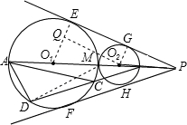分析:可过O1、O2作EF边的垂线,可得出PA为∠EPF的平分线,再过O2作PE的平行线,可得O1Q=