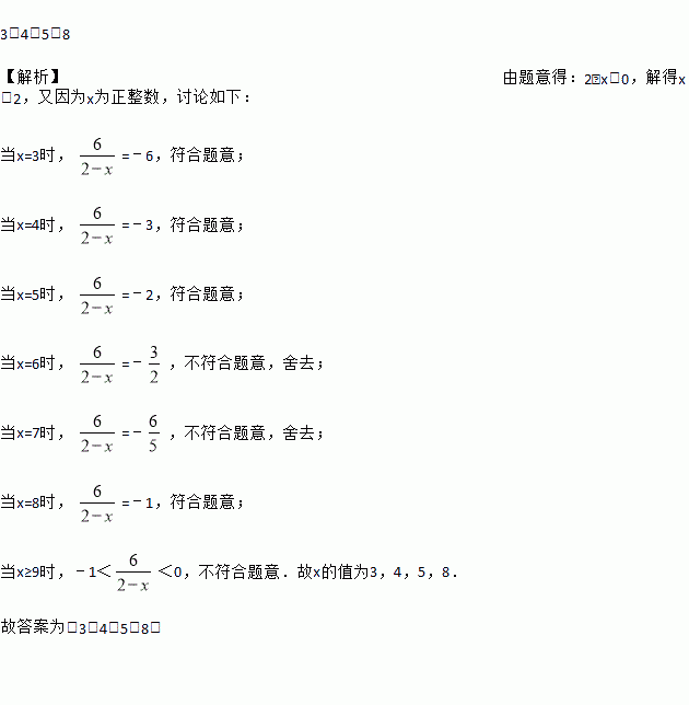 已知x为正整数,当时x=________时,分式的值为负整数.