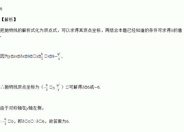 已知二次函数的图象的顶点在轴上,对称轴在轴的左侧,则的值为________.