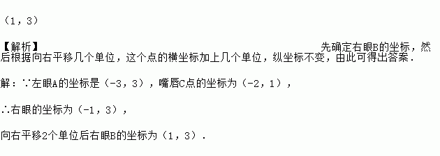 如图,把“QQ”笑脸放在直角坐标系中,已知左眼A的坐标是(?3,3),嘴唇C点的坐标为(?2,1),将此“QQ”笑脸向右平移2个单位后,此“QQ”笑脸右眼B的坐标是 .