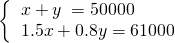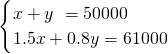 根据销售收入为61000万元,则1.5x+0.8y=61000.