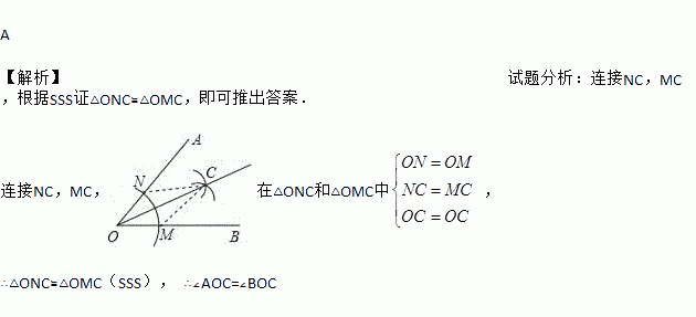 用直尺和圆规作一个角的平分线如图所示,说明∠AOC=∠BOC的依据是( ).