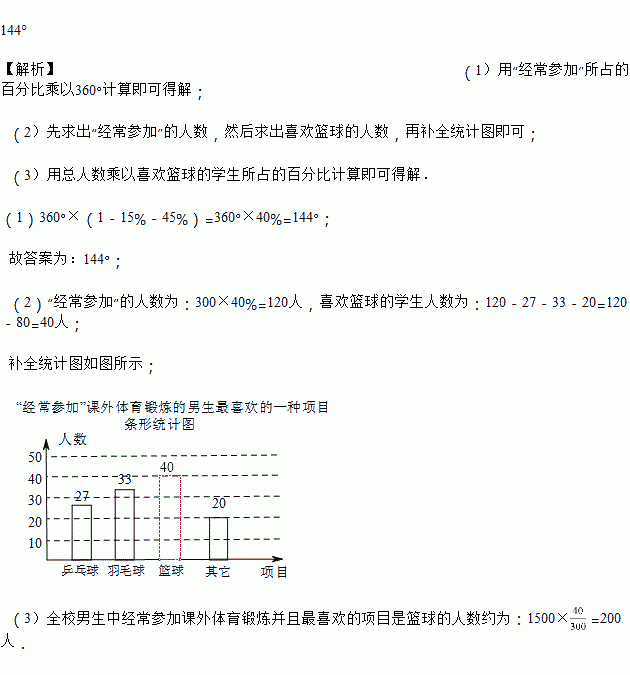 ¢Û¸ÃУ¹²ÓÐ1500ÃûÄÐÉú£¬Çë¹À¼ÆÈ«Ð£ÄÐÉúÖо³£²Î¼Ó¿ÎÍâÌåÓý¶ÍÁ¶²¢ÇÒ×îϲ»¶µÄÏîÄ¿ÊÇÀºÇòµÄÈËÊý.