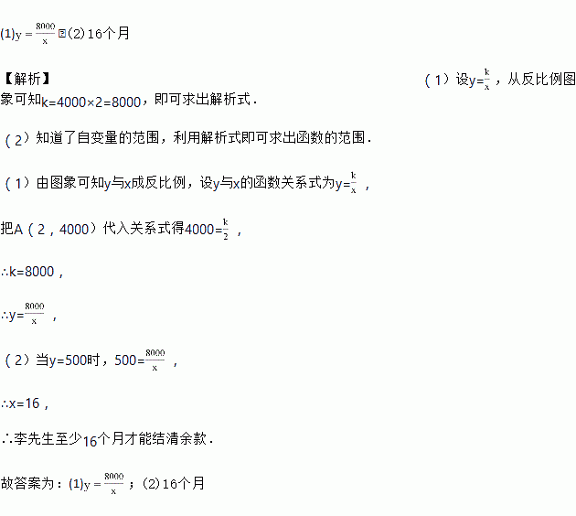 (2)如打算每月付款不超过500元,李先生至少几个月才能结清余款?