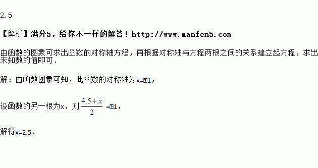 小颖用几何画板软件探索方程ax2+bx+c=0的实数根,作出了如图所示的图象,观察得一个近似根为x1=-4.5,则方程的另一个近似根为x2=____.(精确到0.1)