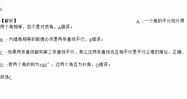 B. 两条直线被第三条直线所截,内错角相等.