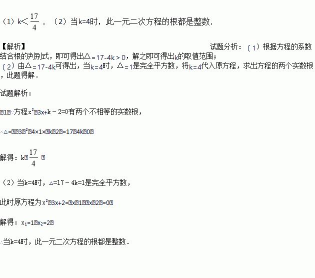 (2)选一个适当的k值使得此一元二次方程的根都是整数.