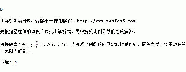 已知圆柱体体积一定,则它的底面积与高之间的函数图象大致为( )