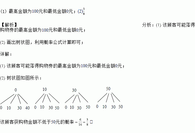 求出该顾客可能落得购物券的最高金额和最低金额;![]()