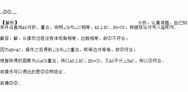 做如下操作:在等腰三角形ABC中,AB= AC,AD平分∠BAC,交BC于点D.将△ABD作关于直线AD的轴对称变换,所得的象与△ACD重合.