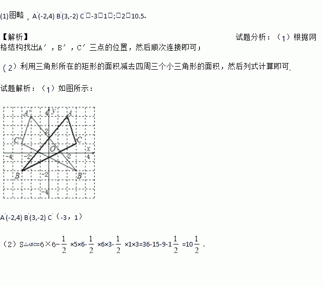 (1)在图中画出△ABC关于y轴对称的△A′B′C′(不写画法),并写出点A′,B′,C′的坐标;