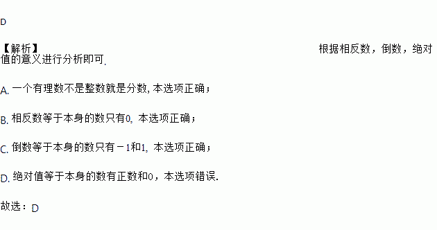 A. 一个有理数不是整数就是分数 B. 相反数等于本身的数只有0