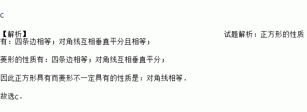 下列性质中,正方形具有而菱形不一定具有的性质是( )