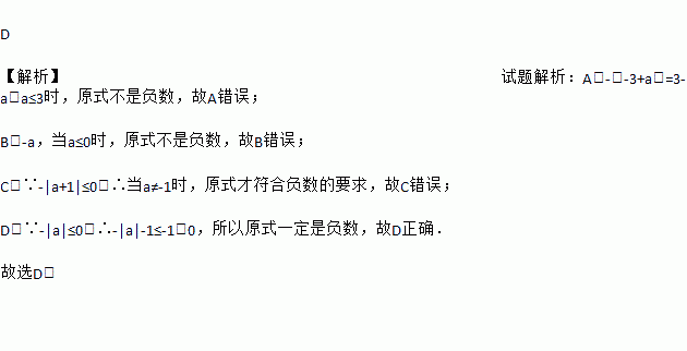 对于任何有理数,下列各式中一定为负数的是
