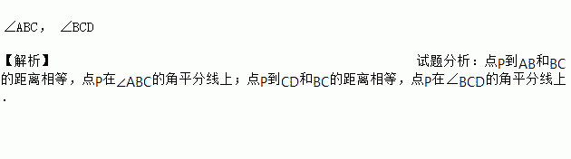 如图,点P到AB,BC,CD的距离相等,则点P是_______________的平分线与_________________的平分线的交点.
