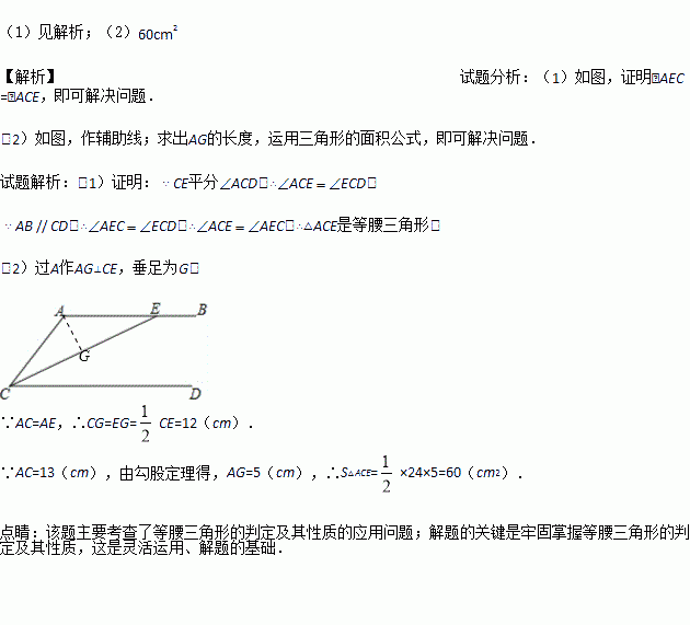 (2)若AC=13,CE=10,求△ACE的面积.