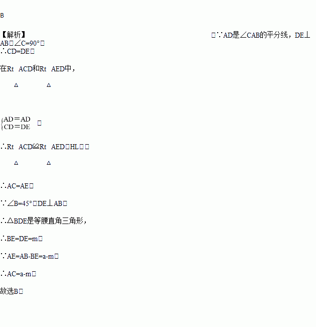 如图,Rt△ABC中,∠C=90°,∠B=45°,AD是∠CAB的平分线,DE⊥AB于E,AB=a,CD=m,则AC的长为( )