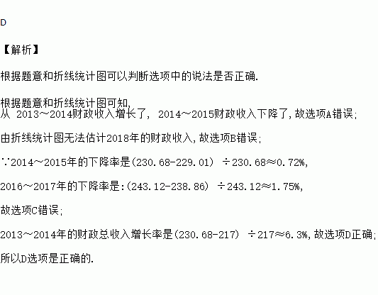 如图,根据2013﹣2017年某市财政总收入(单位:亿元)统计图所提供的信息,下列判断正确的是( )