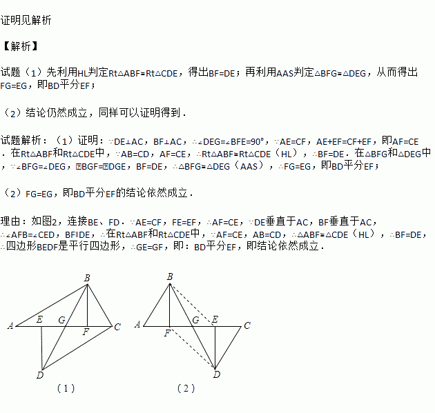 (1)若BD与EF交于点G,试证明BD平分EF;