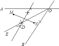 解:仓库D在∠AOB的平分线OE和MN的垂直平分线的交点上.
