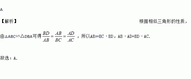 A. AB2=BC•BD B. AB2=AC•BD C. AB•AD=BD•BC D. AB•AD=AD•CD