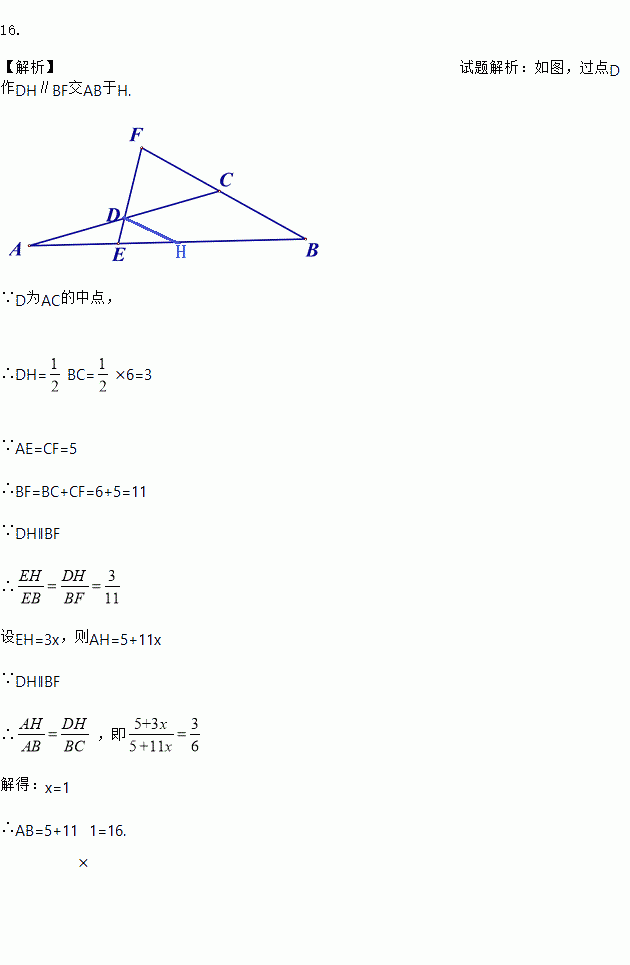 如图中, 是边的中点,过作直线交于点,交的延长线于点,且.若,则_____________