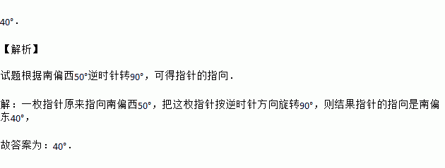 某测绘装置上一枚指针原来指向南偏西50°,把这枚指针按逆时针方向旋转90°,则结果指针的指向是南偏东 .
