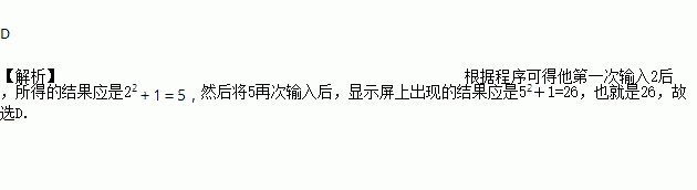 小刚学习了有理数运算法则后,编了一个计算程序,当他输入任意一个有理数时,显示屏上出现的结果总等于所输入的有理数的平方与1的和,当他第一次输入2,然后将所得到的结果再次输入后,显示屏上出现的结果应是( )