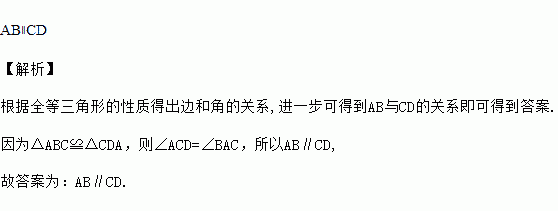 如图,△ABC≌△CDA,则AB与CD的位置关系是_____.